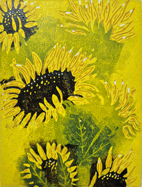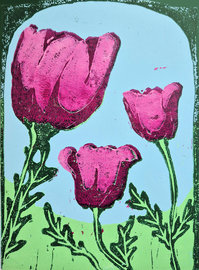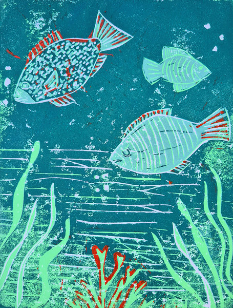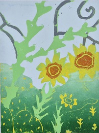 Gallery of work made by students on Cogbeetle lino-reduction courses and workshops