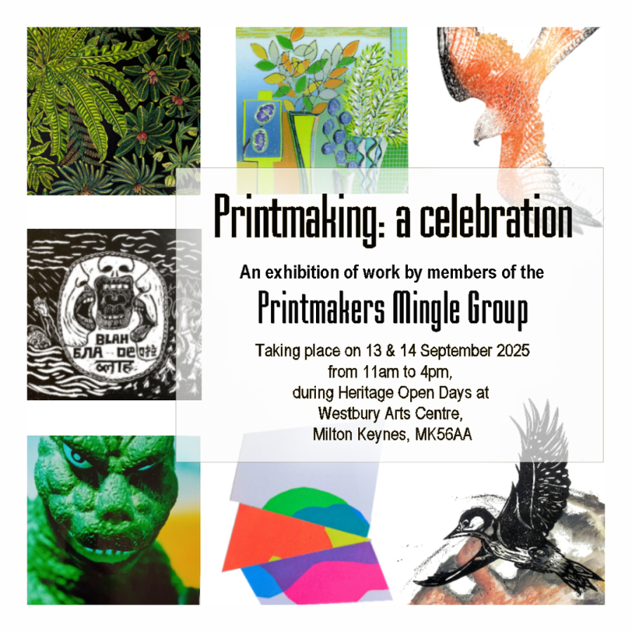 Myself and other local printmakers have formed a group that meets bi-monthly at Westbury Arts Centre to chat about our own work, techniques, equipment and printmaking events. Visit the 'Join Printmakers Mingle Group' page to find out more and/or to join.