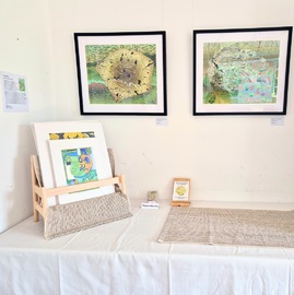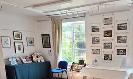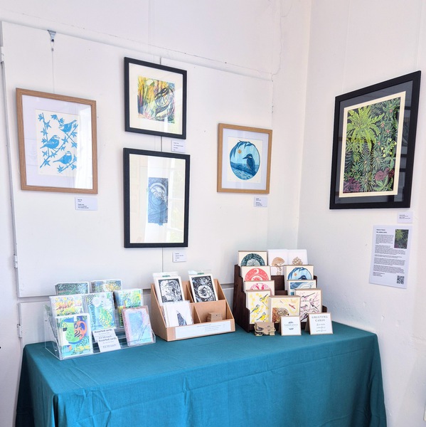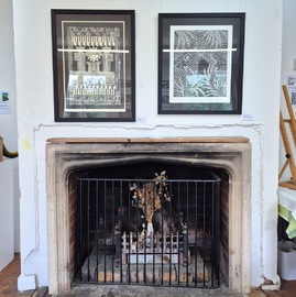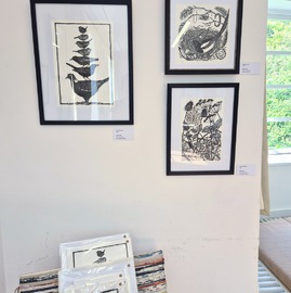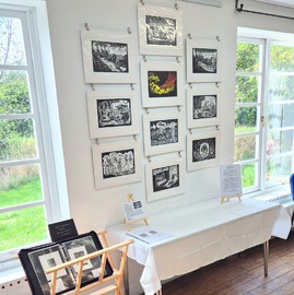 The 2025 exhibition was held in the Drawing Room at Westbury Arts Centre on 13 & 14 September during Heritage Open Days. Seven members of the group participated, exhibiting lino print, wood cut, collagraph, hand-developed photographic print, screen print and lino-reduction print. See pictures of the exhibition below. Click on the pictures to view a larger slide show, and for more details about each image.