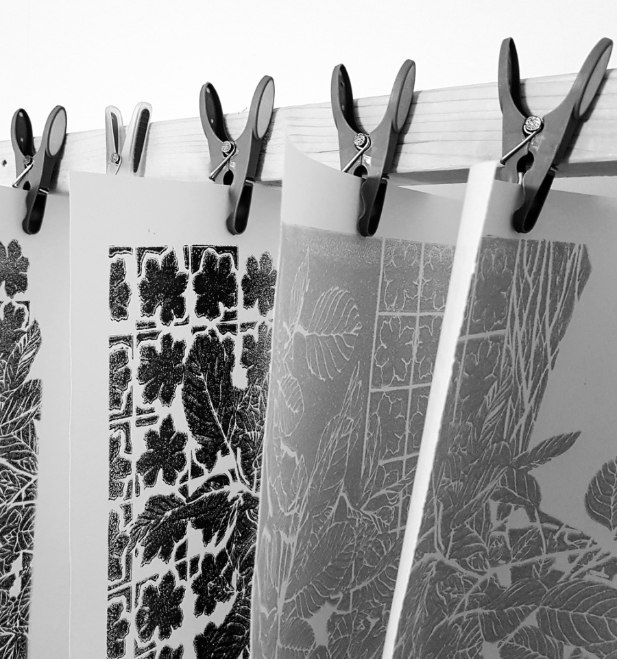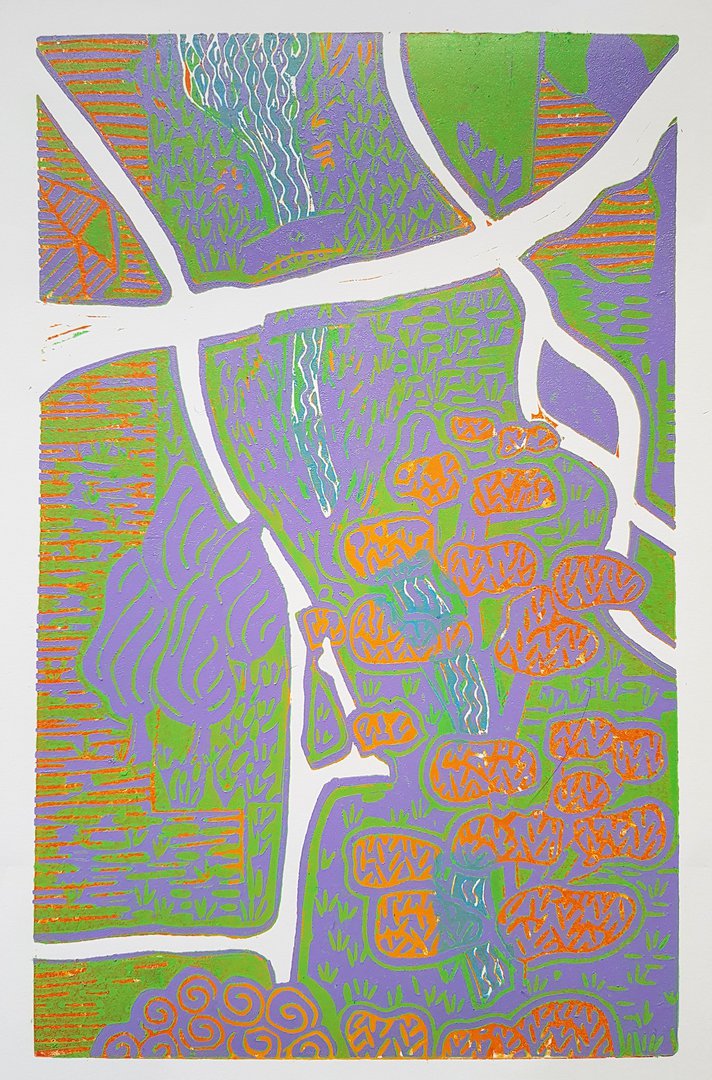 Now cut away whatever you want to leave the colour you have just applied, ready to apply the next colour... Try 'selective inking' to use more than one colour in one printing session.