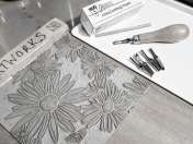 The workshops are suitable for beginners and for people who would like the opportunity to refresh their lino-printing skills using the equipment available. You don't need to be a fantastic drawer or to have had any prior experience... You do need to be able to hold a sharp cutting tool safely and securely. The rest comes with guidance and practice, and that is what this workshop aims to provide. By the end of a workshop, you will have multiple copies of a lovely lino-reduction print image, each with up to four layers of ink. See the video at the bottom of this page for a peek at what other course attendees have done...